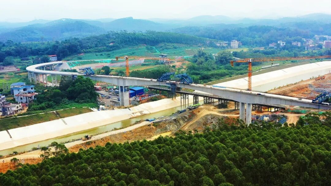 萬勝塘大橋連接靈山縣舊州鎮大茶窩村、玉石壩村以及燕子壩,與X304縣道相連,橋梁總長為510米,橋面寬為9米,屬于連續剛構橋。為提升合龍精度,平陸運河建設管理團隊自主研發了“懸澆橋合龍水箱配重智能調載控制系統”,通過智能監測、精準控制,實現了配重調節的自動化與信息化管理,有效管控成橋線形,確保了橋梁結構的安全性和穩定性。