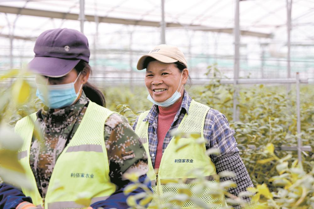 在大棚里,村民梁女士邊修剪枝條邊說:“每天工作8小時(shí),月薪3000多元,每年每畝土地還能獲得流轉(zhuǎn)分紅900元。下班后還能照顧家里老人孩子。”