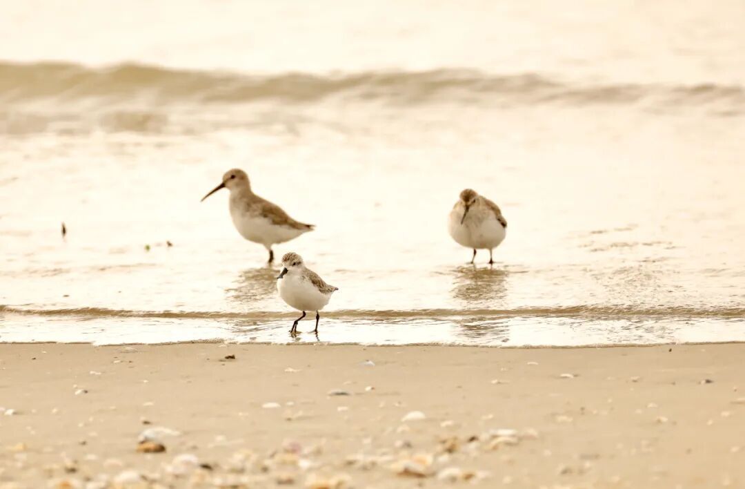 2025年10月25日在三娘灣拍攝到的野生勺嘴鷸(左二)。趙一 攝